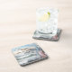 Elegant coaster featuring a fine art painting of a beach with a beautiful wine bottle with glasses.