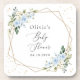 Adicione um toque pessoal à celebração do seu chá de fraldas com estes itens de na moda e festa memoráveis! Design apresenta flores azuis e brancas de aquarela, verde, confete dourado e moldura dourada sobre fundo branco.