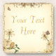 Linda e antiga vintage parece porta copos de casamento com um fundo verde de menta pastel com borda decorativa e rolhas de cima. O fundo apresenta flores colorido pastel e uma ave colorida, podeada em um galho. Lindo tema de vintagem para todos os seus produtos de casamento.