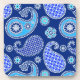 Padrão paisley de ornamentado em tons de azul profundo e turquesa, acentuado com branco, sobre fundo azul de cobalto