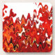 Um abstrato vibrante de vermelhos e laranjas das folhas de uma planta da Virgínia Creeper criando um efeito das chamas do fogo. Um design inspirado pela natureza.