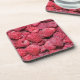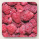 Uma pilha de framboesa vermelha. Vista aproximada. Framboesa simboliza amor, paciência, proteção e fertilidade. Presentes para todos. Produtos e lembranças de formato quadrado.