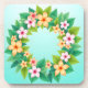 Um arranjo gracioso de flores laranja e cor-de-rosa, acentuado com folhas verdes e peludas. Colocada contra um pano de fundo de gradação de turquesa, este design irradia charme tropical e elegância serena.