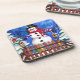 Pintura de aquarela original de Sandra Gale, de um tradicional homem de neve parado em frente a uma cerca de piquete com luzes de Natal brilhantes refletindo sobre a neve do inverno. Pássaros, casas de pássaros, e Enfeites de natal fazem disso uma cena clássica de Natal que parece excelente em papel de embrulho, cartões de natal e muito mais!