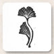Impressão de lino minimalista de uma folha de gingko vertical a preto e branco.