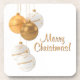 Decorative globes of gold and white make an elegant look as they hang asymmetrically from golden chords. You can change the text to read Happy Holidays, Seasons Greetings, Noel or whatever fits your needs.