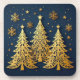 ‘Golden Trio – Starry Pines’ captures the magic of a winter’s night with three intricately adorned Christmas trees glowing beneath a celestial canopy. Swirling patterns, radiant stars, and delicate snowflakes evoke a sense of festive elegance, while the rich navy backdrop adds depth and drama.