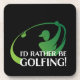 Design moderno único de golfe para homens apresenta um sentimento divertido de golfista, "Eu Preferiria Estar Jogando Golfe!" em letras brancas em negrito dispostas sob uma silhueta de jogador de golfe masculino legal em verde sobre um fundo preto. Escolha perfeita para o golfista ávido em sua vida que sempre preferiria estar no campo de golfe.