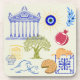 A minimal design of Greek symbols featuring its history, cuisine, and cats.