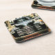 O grupo de seis cortiça-suportado, plástico duro revestiu as portas copos que caracterizam uma fotografia original de um caminhão belamente restaurado de Chevy do vintage após a chuva.