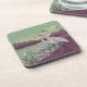 The artwork uses a soft pastel color palette: a green background, muted tones for the birds, a deep shoreline shade, and warm yellow highlights for catai, grasses and a distant sun .