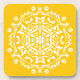 Esta mandala branca senta-se sobre um fundo amarelo de mel. As cores são quentes e pacíficas. Parte da coleção Mola Mandala.