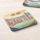 Esta porta copos apresenta uma vista serena da linha do horizonte de Hong Kong com embarcações à vela na frente e subidas nas costas.
