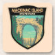 Trabalho de arte vetor do Parque Estadual de Mackinac em um design de crachá. O Parque Nacional de Mackinac era um parque nacional dos Estados Unidos que existia entre 1875 e 1895 na Ilha Mackinac, no norte Michigan.