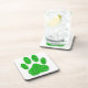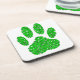 Uma pata de cachorro coberta por folhas verdes. Imagem original.