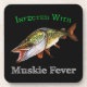 Poucas coisas se comparam a pegar um poderoso pique dentado e muscular. Cor do cheio imagem detalhada de um muskie monstro com o texto Infectado com a Febre Muskie.