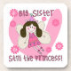 Irmã Grande Ainda As Camisas Princesas, Mágicas, bolsas, cartas, botões, adesivos, correntes-chave, travesseiros e outras grandes irmãs roupa e presentes com uma adorável princesa fada sobre um fundo cardíaco rosa grande e pequenas flores cor-de-rosa com texto que diz "Irmã Grande Ainda a Princesa!".