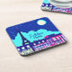 Porta copos em um poster de viagens de Paris sob um céu estrelado azul profundo com uma lua de cheio, e a legenda "J'adore Paris"