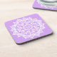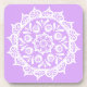 Esta mandala branca senta-se sobre um fundo roxo claro. A cor é feminina e sofisticada. Parte da coleção Brosya Mandala.