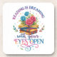 Design vibrante e colorido com um dragão com pilha de livros, o de cima aberto com rosas azuis e cor-de-rosa. O texto colorido diz: "Ler sonha com seus olhos abertos". Esse design está disponível em uma grande variedade de produtos.