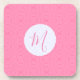Set of six plastic coasters feature a fractal background of light pink squiggly squares. Pink initial resides inside a white circle of squiggly squares. Lovely housewarming gift, Mother's Day, or birthday gift for the right person.
