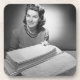 Mulher que senta-se na pilha do linho e das toalhas passados (B&W), marcas do retrato | George | AssetID: 72131160