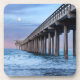 EUA, Califórnia, La Jolla. Lua cheia se pondo ao amanhecer sobre o píer Scripps, La Jolla Shores | Ann Collins / SuperStock.com