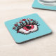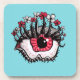 Porta copos visual macabra, com uma ilustração digital que mostra um olho vermelho assustador com pestanas que têm suas próprias pestanas e terminam em flores vermelhas e cinzas sobre fundo azul alegre. Quando, por vezes, os vossos olhos estão tão tensos que têm a certeza de que irão derreter nos próximos três segundos. Esta design psíquica estranha é só para você se você gosta de cores brilhantes e arte estranha.