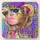 Retrato de um macaco faraó egípcio em púrpura, pinks, blues e amarelos. A. I. e colaboração artística.