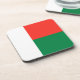 A design based on the flag of Madagascar covers the front of this square coaster. Most flags have a 3:2 or 2:1 aspect ratio but here have been intelligently reshaped by FlagAndMap to fit the product while preserving the integrity of the original design. These coasters are an ideal way to add a little Malagasy flair to your home.