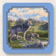 Um lobo-mãe fica num penhasco olhando para um vale abaixo com seus dois filhotes de lobos. Este país cênico de montanhas, rios, florestas e prados é o território pertencente ao seu grupo de lobos. A pintura original intitula-se "Passing It On" porque o lobo-mãe trouxe os seus filhotes para esta cordilheira para lhes mostrar a vasta e bela natureza selvagem que herdarão quando crescerem e assumirem como líderes do grupo. Acentuado com um bonito fundo azul-claro padronizado.