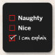 Maluquinho ou bonzinho – posso explicar. Certifique-se de que você não está na lista dos maluquinhos do Papai Noel. Ninguém consegue se comportar bem o ano todo. Tudo o que você precisa é uma boa desculpa.