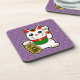 O Maneki Neko, ou Beckoning Cat, trará-te sorte! A cor de fundo roxa pode ser alterada no editor de cheios. Proteja a sua mesa ou mesa dos anéis de água com este conjunto de portas copos de gatos japoneses sortudos!