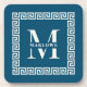 Portas copos modernas e elegantes de monograma com Marinho empoeirado com seu nome e inicial personalizados dentro de um quadro-chave grego em volta da cor costeira do mediterrâneo.