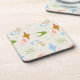 Este conjunto de 6 portas copos com suporte de cortiça apresenta um padrão atômico moderno de meio século com bumerangas, diamantes, retângulos em verde limão, marrom-caramelo, pêssego, rosa e azul para aquele aspecto retrô.
