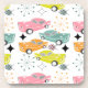 Um padrão super fofo de carros, starbursts atômicos e formas de abstrato inspirados por designs de retromeio século em tons coloridos adoráveis.