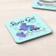 Nossos t-shirt do design da menina do patinador, as canecas, as bolsas, os cartões, os travesseiros, os pulsos de disparo de parede, as lembranças, os hoodies, e outros artigos de patinagem do tema caracterizam um par de skates do azul e da lavanda e mitenes em uma corda cercada por lotes de flocos de neve e do texto invernal que lê a menina do patinador!