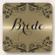 Tons de ouro metálicos elegantes, aspecto de aço inoxidável de fundo, com quadro floral preto e noiva de palavra em texto preto personalizável.