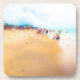O céu desaparece no mar à medida que a névoa deriva em direção à praia. Vista à distância, as pessoas conversam e brincam na borda da água, e outras relaxam sob guarda-chuvas coloridos. O horizonte está alinhado com palmeiras, e a areia é uma adorável cor de ouro. Esta é a cena na fotografia original desta Porta copos.