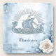 Moldura Floral com Rosas e Desenho Celta. A imagem apresenta uma delicada moldura floral com uma estética suave e sonhadora. Rosas brancas com centros bege sutis e folhas azul-esverdeadas esmaecidas adornam os cantos superior esquerdo e inferior direito. A própria moldura é construída a partir de um desenho celta azul-gelo. Um padrão de nó celta circular e tênue é visível ao fundo.