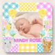 Porta-copo Moldura Floral e Xadrez Foto Bebê Recém-Nascido