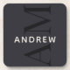 Esta porta copos azul marinho escura apresenta um layout moderno com um monograma vertical em grande tipo, e seu nome em um tipo horizontal simples e proeminente.