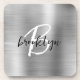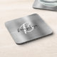 Esta elegante porta copos personalizada apresenta um monograma e primeiro nome em modernos roteiros preto e branco sobre um fundo de metal esfregado falso prateado.