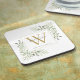 Pousa-copos de nome monograma de folhagem em aquarela elegante com inicial de monograma dourado. Desenhado por Thisisnotme©