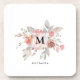 Coaster De Bebidas De Monograma De Cor Flórida De Cor Flórida Blush Rosa Elegante.