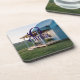 Esta porta copos apresenta uma foto digital de uma cabana com um lado vertical de metal azul e um teto de metal azul. A casa tem uma varanda coberta. O nome na porta copos é Olivia em um roteiro azul escuro. A letra ou monograma é uma letra maiúscula O em escrita azul escuro. Há uma cadeira de balanço de madeira de cinza na varanda e dois planadores com samambaias verdes. As dimensões da porta copos de plástico são de 3,8" por 3,8". O conjunto de portas copos contém seis portas copos. As portas copos têm rolamentos de cortiça não derrapantes. As portas copos são de plástico brilhante com uma superfície limpa e fácil de limpar.