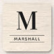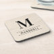 Esta simples e elegante combinação personalizada de bebidas monogramas apresenta um texto clássico de monograma preto que pode ser personalizado com um sobrenome inicial e sobrenome. Um belo presente de manutenção para um novo casal, família ou novos proprietários. Um fundo natural branco lavado de madeira falsa adiciona um olhar rústico texturizado ao design.