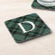 design de porta copos de na moda de bebida de feriado apresenta um padrão de xadrez tartana em preto com cor de fundo de caçador/pinheiro verde (pode ser modificado). Personalize com o monograma inicial ou outro texto personalizado da sua família.