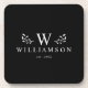 Porta copos moderna de monograma rústico com nome de família personalizado e inicial, bem como ano estabelecido rodeado de ilustrações de galhos brancos. Minimalista, simples e na moda, esta porta copos de família branca e negra é um presente perfeito e confortável!