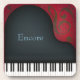 Esta porta copos é uma ilustração estilizada de belo piano de cauda preto cercado por símbolos musicais e personalizado com um nome ou palavra da sua escolha.
